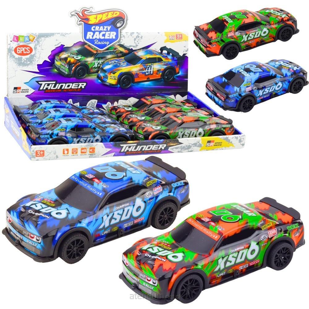 SAMOCHÓD WYŚCIGOWY XS06 NAPĘD FRYKCYJNY ŚWIATŁA DŹWIĘKI Samochód wyścigowy XS06 to dynamiczna i efektowna zabawka stworzona z myślą o dzieciach uwielbiających szybką jazdę, wyścigi oraz kolorowe, sportowe pojazdy. Zabawka została zaprojektowana z myślą o ekscytującej zabawie, która nie tylko dostarcza rozrywki, ale także wspiera rozwój koordynacji i wyobraźni dziecka. Auto wyposażone jest w napęd frykcyjny, dzięki któremu po popchnięciu rusza do przodu, imitując jazdę prawdziwego wyścigowego samochodu. Dodatkowym atutem są efekty świetlne i dźwiękowe, które aktywują się po naciśnięciu przycisku - samochód świeci i wydaje realistyczne odgłosy jazdy, co sprawia, że zabawa staje się jeszcze bardziej angażująca. Samochód dostępny jest w dwóch wersjach kolorystycznych - pomarańczowej z zielonymi elementami i niebieskiej, z dynamicznym wzorem karoserii inspirowanym autami rajdowymi. Dzięki kompaktowym rozmiarom doskonale nadaje się do zabawy w domu, a jego wytrzymała konstrukcja sprawia, że przetrwa nawet intensywne wyścigi. Doskonały wybór na prezent dla każdego małego fana motoryzacji. W opakowaniu zbiorczym znajduje się 6 pojazdów. Sprzedawane osobno. SPECYFIKACJA: Wymiary auta: 19,5 x 9 x 5,5 cm Kolor: pomarańczowy, niebieski Zasilanie: 3 x AG13 (w zestawie) Wymiary opakowania zbiorczego: 40 x 27 x 7 cm Funkcje: napęd frykcyjny, efekty świetlne, efekty dźwiękowe ZAWARTOŚĆ ZESTAWU: Samochód wyścigowy 3 x bateria AG13