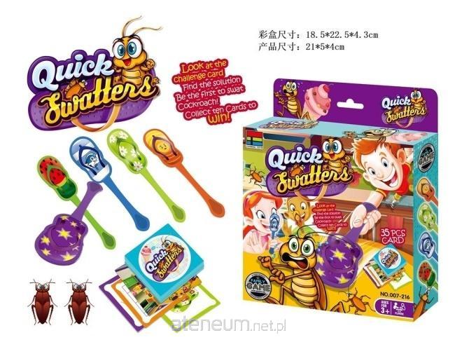 Quick Swatters - Dynamiczna gra zręcznościowa, która wciągnie Cię na długie godziny! Przygotuj się na pełną śmiechu i rywalizacji zabawę z Quick Swatters! Ta wciągająca gra zręcznościowa sprawdzi Twoją szybkość reakcji i koordynację wzrokowo-ruchową. Zasady są proste: wyłóż karty wyzwań, wypatruj odpowiedniego karalucha i bądź pierwszy, który go złapie przy pomocy kolorowej klapki pasującej do wzoru na karcie. W zestawie znajdziesz urocze, kolorowe klapki w kształcie klapek oraz karty z różnorodnymi wzorami karaluchów. Każdy gracz wybiera swoją klapkę i czeka na odkrycie karty wyzwania. Gdy tylko karta się pojawi, rozpoczyna się szaleńcza pogoń za odpowiednim karaluchem! Zbieraj karty za każde udane schwytanie. Quick Swatters to doskonały sposób na spędzenie czasu w gronie rodziny i przyjaciół. Gra dostarcza mnóstwo emocji, uczy refleksu i spostrzegawczości, a przy tym jest niezwykle zabawna. Kompaktowe opakowanie sprawia, że gra idealnie nadaje się na podróże i spotkania towarzyskie. Zawartość zestawu: Kolorowe klapki do łapania karaluchów. Karty wyzwań z różnymi wzorami karaluchów. Cechy produktu: Liczba graczy: 2-4 Rozwija refleks i koordynację wzrokowo-ruchową. Idealna na prezent i wspólne spędzanie czasu. Nie czekaj! Zostań mistrzem szybkich łapek z Quick Swatters!