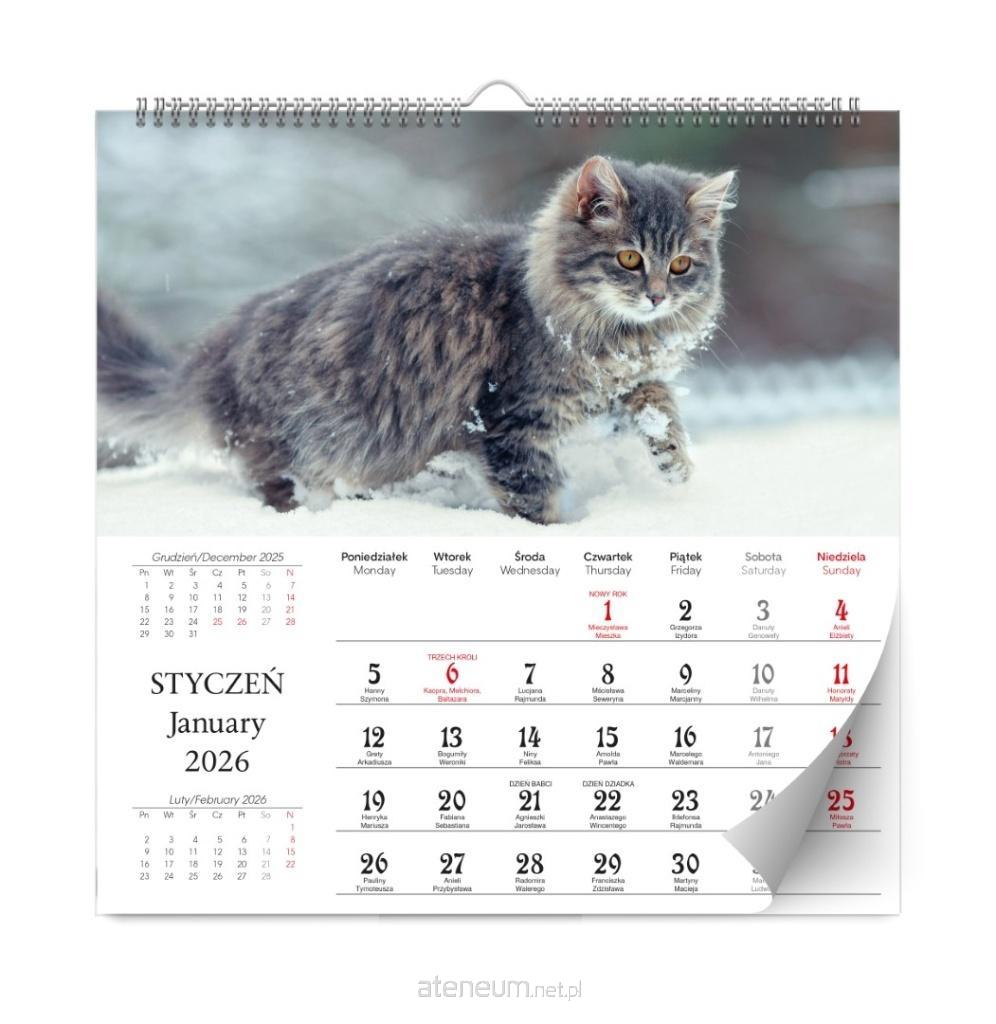 Kalendarz 2026 trójdzielny 82,5x34cm Koty