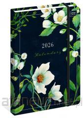 Kalendarz książkowy w twardej skóropodobnej oprawie ze wstążką. Okładka w dwóch wersjach "damska i męska". Układ kalendarium dzienny. 336 stron. Wymiary 143x211 mm
