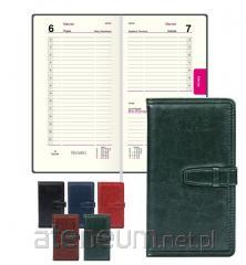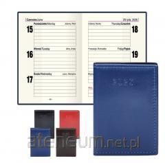 Kalendarz kieszonkowy w miękkiej skóropodobnej oprawie. Układ kalendarium 2-tygodniowy. 80 stron. Wymiary 75x115 mm