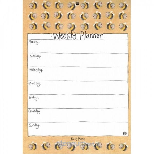 Planer w formacie A4. Na środku u góry posiada otwór, który pozwala na łatwe zawieszenie. Zawiera 60 arkuszy, jeden arkusz na każdy tydzień w roku i kilka zapasowych.