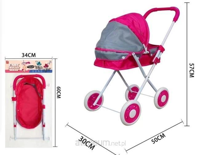 Podaruj swojej małej opiekunce radość z posiadania własnego wózka dla lalek! Ten uroczy wózek w modnej kolorystyce różu i szarości zachwyca swoim realistycznym wyglądem i funkcjonalnością. Lekka konstrukcja oraz skrętne przednie kółka zapewniają łatwość prowadzenia zarówno w domu, jak i podczas spacerów. Wózek jest składany, co ułatwia jego przechowywanie i transport. Cechy produktu: Kolorystyka: Różowy z szarymi elementami. Wymiary rozłożonego wózka: Długość 50 cm, szerokość 30 cm, wysokość do rączki 57 cm. Wymiary opakowania: 34 cm x 60 cm. Funkcjonalność: Składana konstrukcja, skrętne przednie kółka. Idealny dla: Dzieci uwielbiających zabawę w dom i opiekę nad lalkami. Ten wózek to doskonały pomysł na prezent, który rozbudzi wyobraźnię i zapewni wiele godzin kreatywnej zabawy.