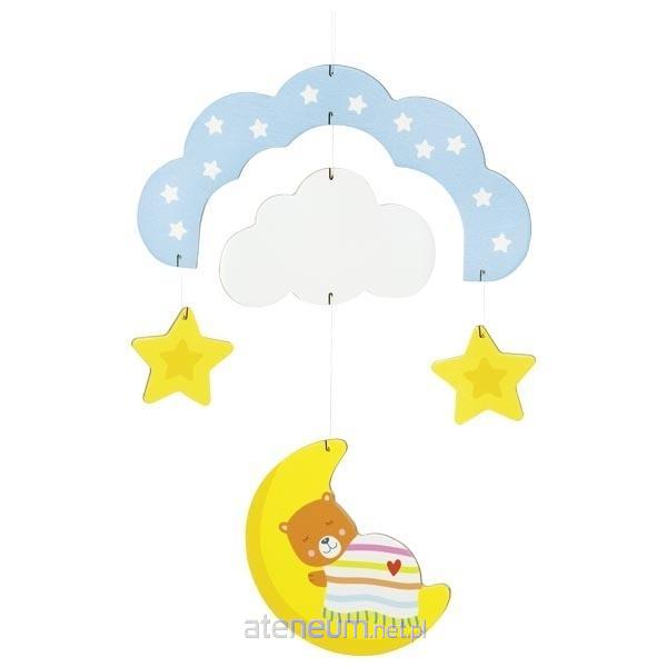 Drewniana ozdoba do zawieszenia nad łóżkiem lub w pokoju dziecięcym. Uspokajające nocne motywy i delikatne barwy przyciągają wzrok malucha, stymulując zmysł wzroku i wyciszając przed snem. Pomaga budować poczucie bezpieczeństwa i rozwija wyobraźnię.