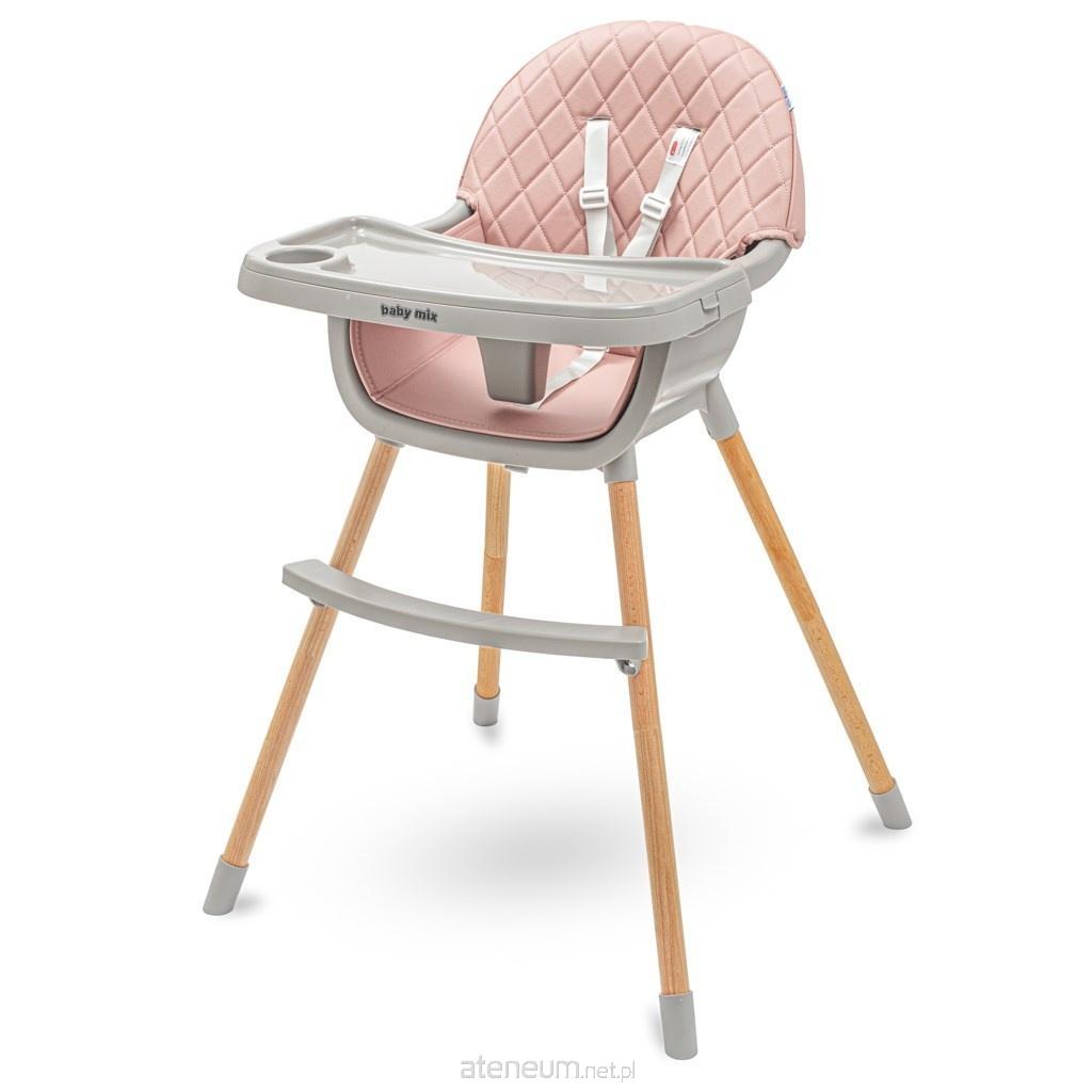 Krzesełko Baby Mix posiada wszystkie funkcje, które ułatwiają codzienne karmienie: regulowaną podwójną tackę, 5-punktowe pasy bezpieczeństwa, zdejmowaną tapicerkę z ekoskóry, podnóżek, materiałowy kosz, antypoślizgowe nóżki. Krzesełko można łatwo przekształcić w niski taboret, zdejmując dolną część nóg. Krzesełko Baby Mix jest odpowiednie dla dzieci w wieku 6-36 miesięcy.