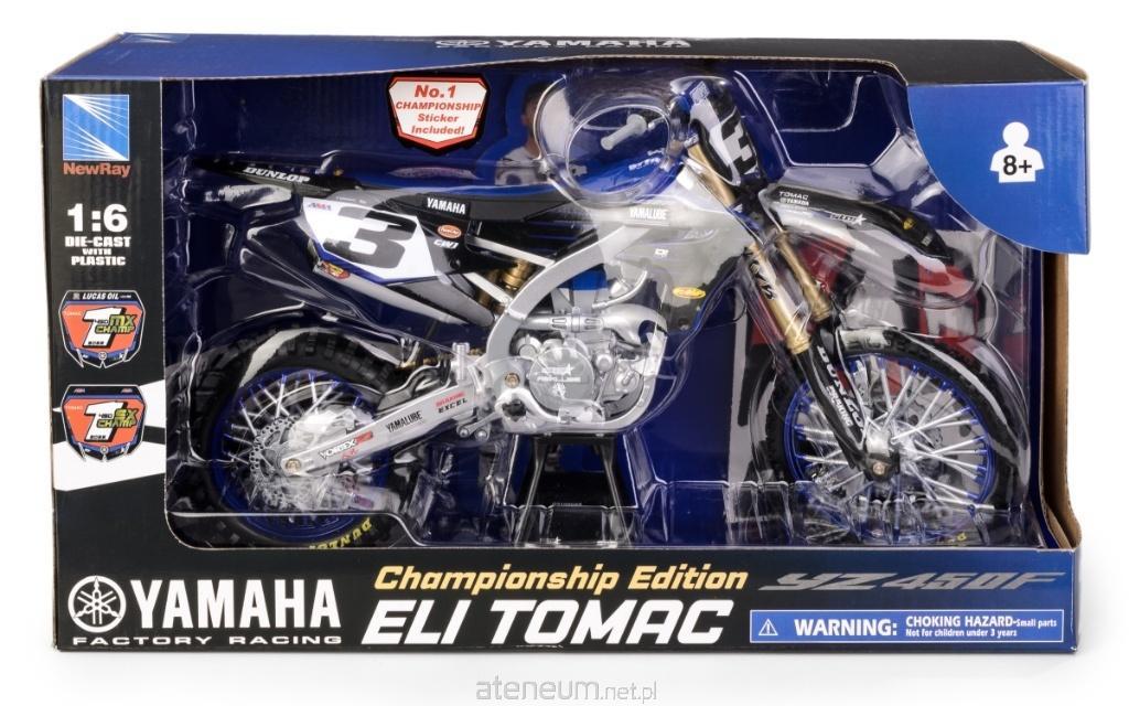 | Yamaha YZ450F Star Racing Team 2022 - Eli Tomac | DUŻY MODEL 1:6 | NEW RAY Zdobądź motocykl Eli Tomaca w skali 1:6! Niezwykle szczegółowy model wyścigowy Yamaha YZ450F, idealny dla kolekcjonerów i fanów motocrossu. Model Yamaha YZ450F Star Racing Team 2022 z Eli Tomacem to prawdziwa gratka dla każdego miłośnika motocrossu. Wykonany z metalu i plastiku, oferuje realistyczne detale: skrętną kierownicę, amortyzator, gumowe opony i ruchome koła. Dodatkowo, model wyposażony jest w tekturową postać Eli Tomaca oraz dodatkowe naklejki, które pozwalają na personalizację motocykla. Najważniejsze cechy: o Metalowy model z plastikowymi elementami - wysoka jakość i precyzyjne odwzorowanie o Ruchome koła i skrętna kierownica - pełna interakcja i realizm o Gumowe opony - jak w prawdziwej wyścigówce o Amortyzator - odwzorowanie zawieszenia w skali o Ściągany podest - świetny sposób na wyeksponowanie modelu o Tekturowa postać Eli Tomaca - dodatkowy detal w zestawie o Dodatkowe naklejki - możliwość personalizacji motocykla o Marka: New Ray - licencjonowana jakość Wymiary motocykla: 36 x 14 x 23 cm Wymiary opakowania: 41 x 23 x 14 cm Wymiary postaci: 21 x 7 cm Waga zestawu: 1051 g Doskonały prezent dla fanów Yamaha, Eli Tomaca, motocrossu i kolekcjonerów modeli w dużych skalach! |