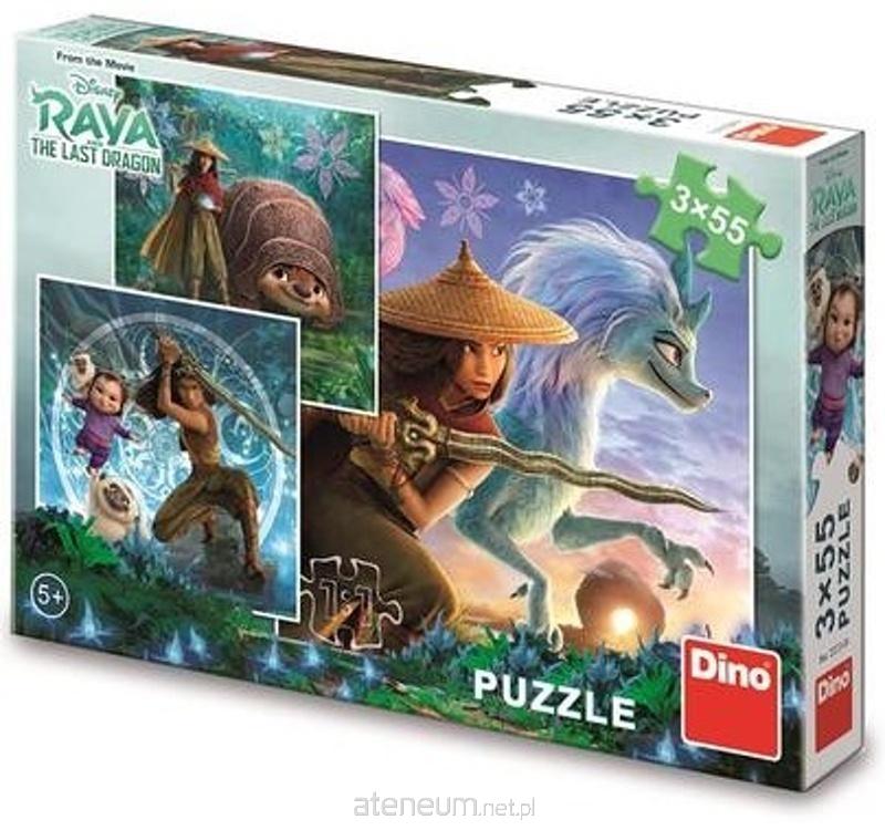 Puzzle z motywem z bajki Disneya Raya ostatni smok. Zestaw zawiera 3 układanki, każda po 55 elementów. Puzzle przeznaczone są dla dzieci powyżej 5 roku życia i poziomem trudności zostały dopasowane do ich wieku. Po ułożeniu pojedynczy obrazek ma wymiary 18 x 18 cm. Puzzle zostały wykonane z materiałów wysokiej jakości, dzięki czemu są odporne na zginanie i uszkodzenia. Wymiary opakowania 27,5 x 19 x 4,5 cm. Wyprodukowano w Czechach