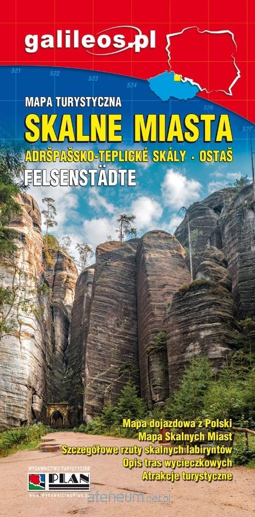 Nowe wydanie popularnej mapy Skalnych Miast będących jedną z największych atrakcji turystycznych w północnych Czechach, tuż przy granicy z Polską. Mapa w skali 1:35 000 obejmuje obszar Aderszpaskich i Teplickich skał wraz z okolicami. Obszar mapy obejmuje również Mieroszów i Chełmsko Śląskie, co szczególnie ułatwi dotarcie w ten rejon osobą przybywającym z okolic Jeleniej Góry i Wałbrzycha. Dodatkowo mapa zawiera szczegółowy schemat każdego ze Skalnych Miast wraz z prowadzącymi przez nie trasami turystycznymi w skali 1:5 000 (Teplickie Skały i Aderszpaskie Skaly) oraz1:7 000 (Osta). Na rewersie znajdziemy również mapę dojazdową w skali 1:220 000 oraz opis turystyczny ze zdjęciami.