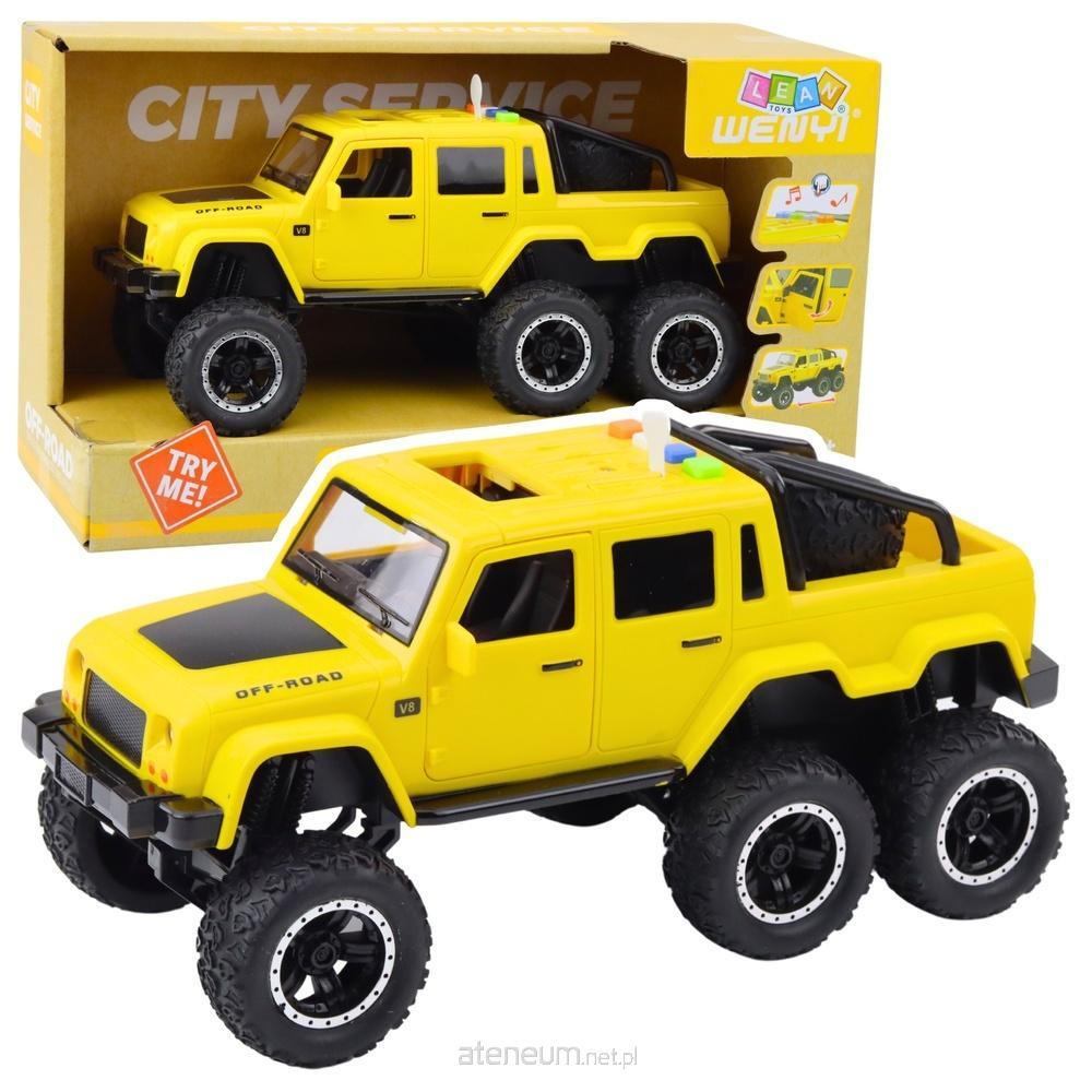 AUTKO TERENOWE PICKUP Z EFEKTAMI DŹWIĘKOWYMI I ŚWIETLNYMI NAPĘD FRYKCYJNY Terenowy pojazd do zadań specjalnych to spełnienie marzeń każdego młodego miłośnika motoryzacji. Auto łączy nowoczesny wygląd z realistycznymi funkcjami, zapewniając wiele godzin emocjonującej zabawy. Dzięki solidnemu wykonaniu i zastosowaniu napędu frykcyjnego, pojazd porusza się samodzielnie po pchnięciu - bez potrzeby użycia baterii do jazdy. Model posiada aż 6 masywnych kół z bieżnikowanymi oponami, co zwiększa jego stabilność i pozwala mu pokonywać niewielkie przeszkody. Na dachu znajdują się cztery przyciski, które uruchamiają efekty dźwiękowe: odgłos zapalania silnika, klakson, cofanie, syrena i pilot. Dodatkowym atutem są otwierane drzwi, które zwiększają interakcyjność i realizm zabawy. Auto wykonano z wysokiej jakości plastiku w eleganckim żółym kolorze. Zabawka rozwija wyobraźnię, refleks, koncentrację oraz uczy podstaw ruchu drogowego. To doskonała propozycja do zabawy samodzielnej i wspólnej - z rodzicami lub rówieśnikami. SPECYFIKACJA: Wymiary auta: ok. 25,5 x 12,5 x 12 cm Wymiary opakowania: 32,5 x 19 x 14 cm Napęd: frykcyjny (mechaniczny) Zasilanie: 3x AG13 (w zestawie) Efekty: dźwiękowe i świetlne Otwierane drzwi: tak Materiał: tworzywo sztuczne ZAWARTOŚĆ ZESTAWU: Autko terenowe Pickup 6x6 Baterie AG13 (3 szt.) Opakowanie