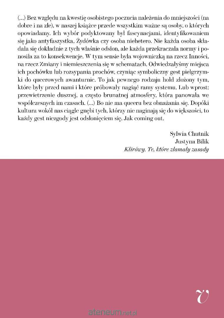 W książce Kłirówy Te które złamały zasady znajdziesz fascynujące biografie piętnastu niezwykłych kobiet, które stały się symbolem walki o akceptację i różnorodność. Każda z nich, w swoim unikalnym stylu, przyczyniła się do zmiany postrzegania osób queer, łamiąc utarte schematy i normy społeczne. To nie tylko opowieści o ich życiu, ale także o ich niezłomnej determinacji i odwadze w dążeniu do prawdy.