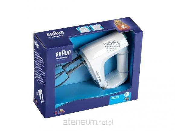 Mikser ręczny Klein powstał na licencji Braun, dlatego też są wierną kopią prawdziwego urządzenia produkowanego przez tę firmę. Firma Klein od lat produkuje odpowiedniki prawdziwych narzędzi i akcesoriów AGD, przeznaczone do zabawy dla najmłodszych. Mikser jest w kolorze białym z szarymi mieszadłami i przyciskami. Zabawka jak prawdziwa, ma obracane mieszadła, które włącza się za pomocą przycisku. Do właściwego funkcjonowania zabawki niezbędne jest użycie baterii, które nie są częścią zestawu. Dodatkowo mikser posiada ruchomy przełącznik będący imitacją regulacji prędkości pracy miksera. Ponadto mieszadła po skończonej zabawie można zdemontować i jak prawdziwe umyć. Dzięki mikserowi Braun każda zabawkowa kuchnia stanie się kompleta, a każda zabawa w dom jeszcze ciekawsza. Solidne wykonanie i dbałość o szczegóły zabawki zapewnią jej trwałość na długi czas. Materiały, są najwyższej jakości, a także bezpieczne dla dziecka. Zabawka pozwoli każdemu dziecku na naśladowanie rodziców w sposób bezpieczny i pełen dobrej zabawy. Wielkość wszystkich elementów i akcesoriów zestawu jest dopasowana do potrzeb i rączek dziecka. Zabawka z pewnością będzie również świetnym uzupełnieniem pozostałych zestawów kuchennych firmy Klein.