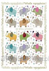 Kartka zawiera życzenia i kolorowy środek. W zestawie znajduje się koperta, kolorystycznie uzupełniająca się z kartką.