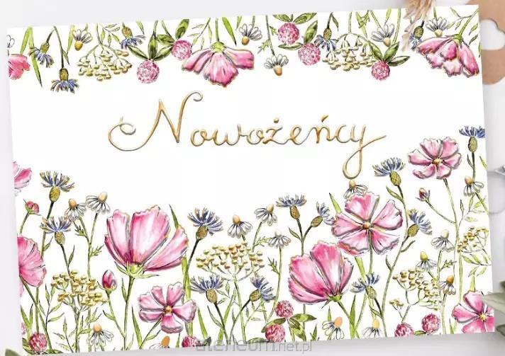 Karne w formacie A5, złocony i tłoczony, teksy życzeń w środku. Wydrukowany na wysokiej jakości papierze. W zestawie koperta.