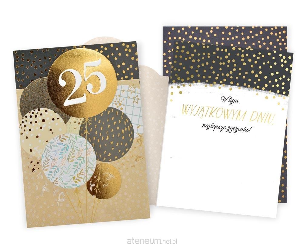Kartka Dream Cards "Urodziny 25" DK-1250 Kartka B6 z ozdobnej serii Dream Cards - nieduża, ale robi wrażenie dzięki atrakcyjnej kolorystyce i ciekawym zdobieniom. To idealny wybór łączący przyjazną cenę z jakością. Cechy szczególne: wielkość: B6, 16.6 x 11.7 cm po złożeniu, koperta: w zestawie, kolorowa, zdobienia: kolorowe, różnorodne, bogate (w zależności od wzoru: przyklejane dekoracje, elementy biżuteryjne, odstawniki, metaliczne folie, tłoczenia itp.), okazja: urodziny