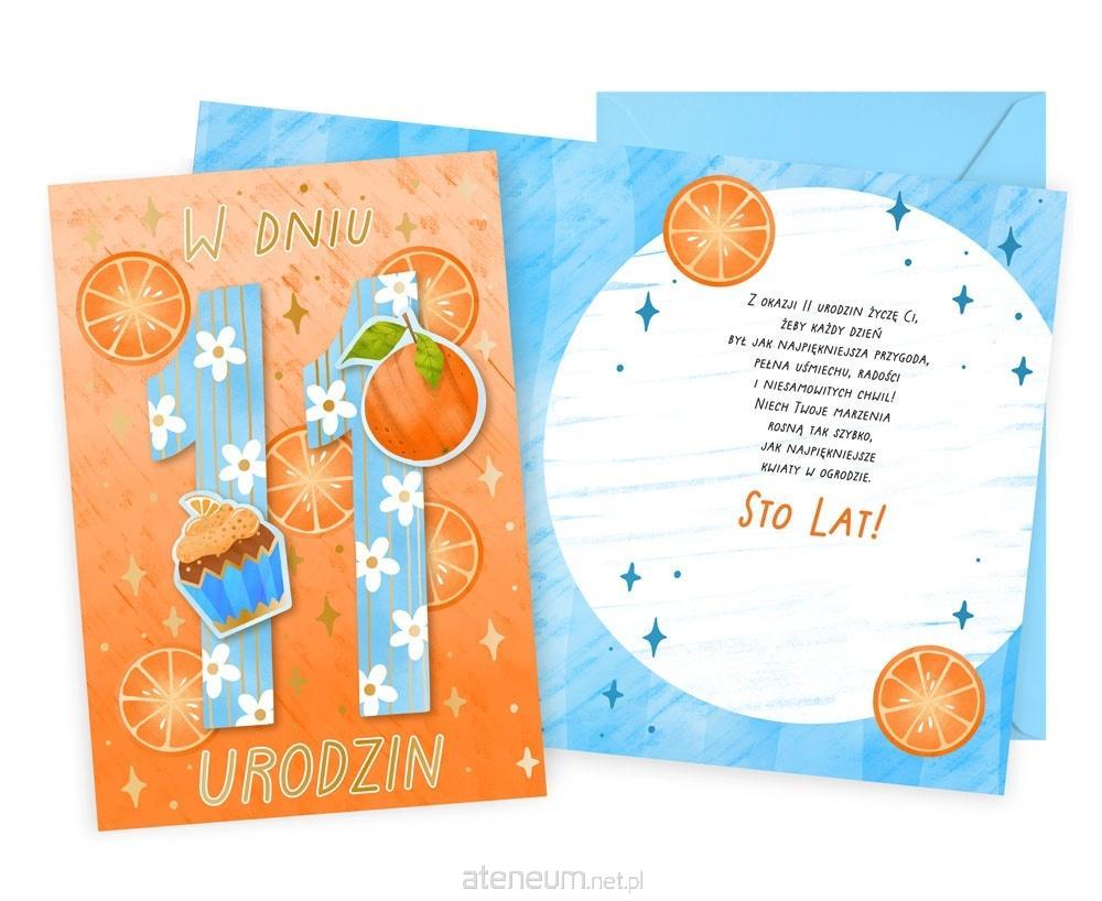 Kartka Dream Cards "W dniu 11 urodzin" DK-1260 Kartka B6 z ozdobnej serii Dream Cards - nieduża, ale robi wrażenie dzięki atrakcyjnej kolorystyce i ciekawym zdobieniom. To idealny wybór łączący przyjazną cenę z jakością. Cechy szczególne: wielkość: B6, 16.6 x 11.7 cm po złożeniu, koperta: w zestawie, kolorowa, zdobienia: kolorowe, różnorodne, bogate (w zależności od wzoru: przyklejane dekoracje, elementy biżuteryjne, odstawniki, metaliczne folie, tłoczenia itp.), okazja: urodziny