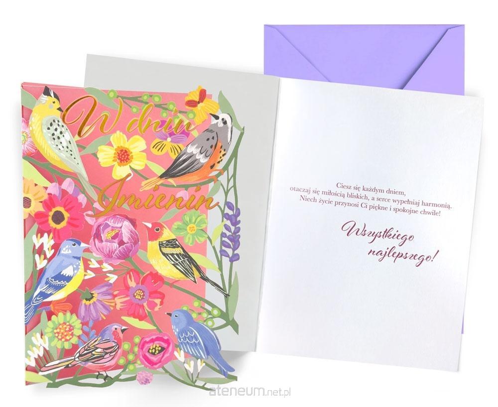 Kartka Dream Cards "W dniu imienin" DK-1277 Kartka B6 z ozdobnej serii Dream Cards - nieduża, ale robi wrażenie dzięki atrakcyjnej kolorystyce i ciekawym zdobieniom. To idealny wybór łączący przyjazną cenę z jakością. Cechy szczególne: wielkość: B6, 16.6 x 11.7 cm po złożeniu, koperta: w zestawie, kolorowa, zdobienia: kolorowe, różnorodne, bogate (w zależności od wzoru: przyklejane dekoracje, elementy biżuteryjne, odstawniki, metaliczne folie, tłoczenia itp.), okazja: imieniny