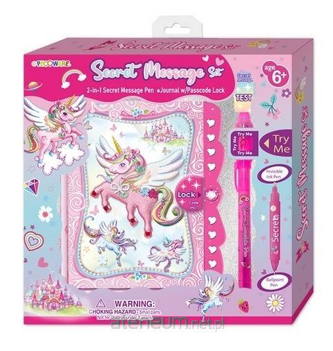 Pamiętnik zamykany na zamek z szyfrem. W zestawie znajduje się długopis z 'niewidzialnym' tuszem i akcesoria do dekorowania. Zapiski tym tuszem będą widoczne po podświetleniu ich specjalną lampką UV, która znajduje się w końcówce długopisu. Wiek: 6+