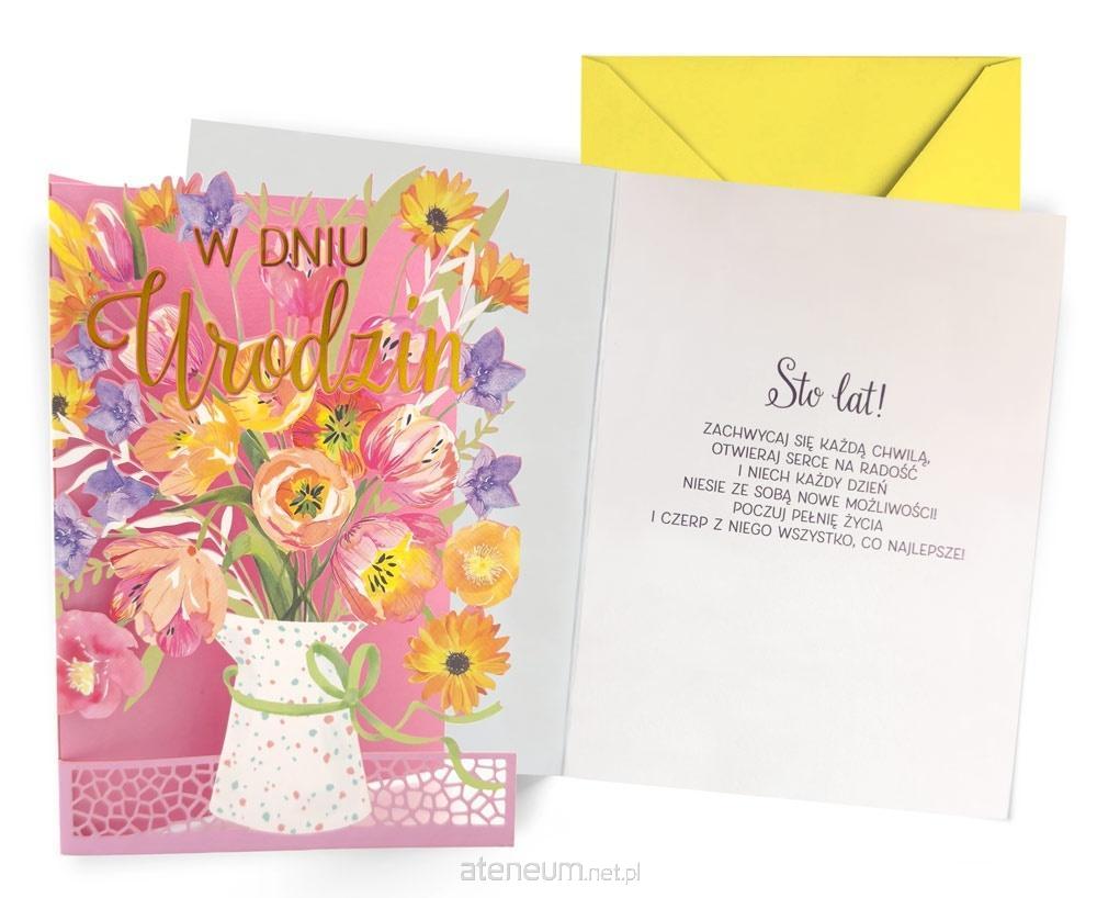 Kartka Dream Cards "Z dniu urodzin" DK-1280 Kartka B6 z ozdobnej serii Dream Cards - nieduża, ale robi wrażenie dzięki atrakcyjnej kolorystyce i ciekawym zdobieniom. To idealny wybór łączący przyjazną cenę z jakością. Cechy szczególne: wielkość: B6, 16.6 x 11.7 cm po złożeniu, koperta: w zestawie, kolorowa, zdobienia: kolorowe, różnorodne, bogate (w zależności od wzoru: przyklejane dekoracje, elementy biżuteryjne, odstawniki, metaliczne folie, tłoczenia itp.), okazja: urodziny