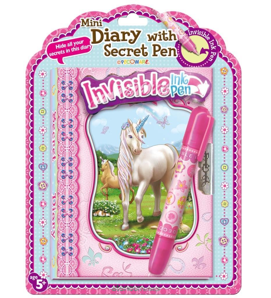 Dzięki małemu rozmiarowi będzie idealny jako pierwszy pamiętnik. Zawiera kartki z liniami na drobne zapiski, a bogate zdobienia i dekoracje przyciągną wzrok. Jedna końcówka długopisu pisze "niewidzialnym" tuszem, który będzie widoczny dopiero po zamalowaniu go drugą końcówką. W zestawie 2 kluczyki do otwierania zamka. Wiek: 5+