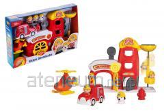 Wykonany z drewna w jasnoczerwonym kolorze z ilustrowanymi detalami.