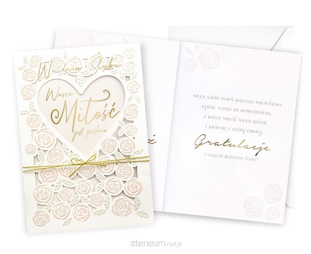 Kartka Dream Cards na Ślub DK-1322 Kartka B6 z ozdobnej serii Dream Cards - nieduża, ale robi wrażenie dzięki atrakcyjnej kolorystyce i ciekawym zdobieniom. To idealny wybór łączący przyjazną cenę z jakością. Cechy szczególne: wielkość: B6, 16.6 x 11.7 cm po złożeniu, koperta: w zestawie, kolorowa, zdobienia: kolorowe, różnorodne, bogate (w zależności od wzoru: przyklejane dekoracje, elementy biżuteryjne, odstawniki, metaliczne folie, tłoczenia itp.), okazja: Ślub
