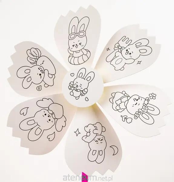 papierowy wiatraczek z szablonem do malowania, 6 końcówek, centralne koło, patyczek, całkowita długość złożonego wiatraczka 38,5 cm
