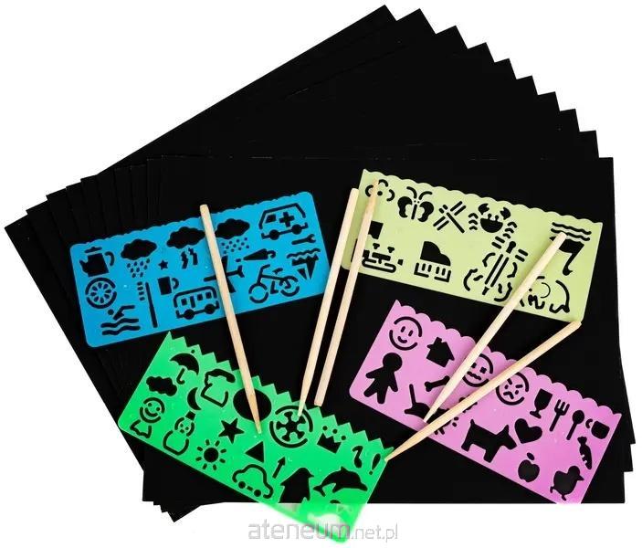 zestaw 10 arkuszy rysunkowych A4, 5 pisaków, 4 szablony