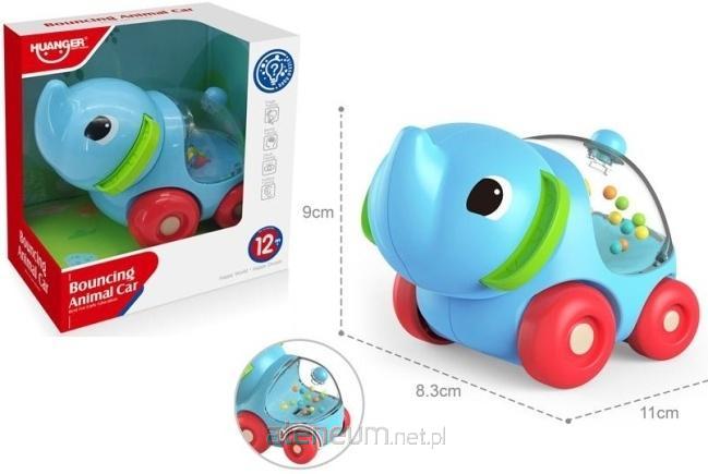 HUANGER Bouncing Animal Car - Interaktywny Słonik z Podskakującymi Kulkami Zapewnij swojemu dziecku godziny radosnej zabawy z HUANGER Bouncing Animal Car! Ten uroczy jeździk w kształcie niebieskiego słonika to coś więcej niż zwykła zabawka. Posiada innowacyjny, przezroczysty zbiornik wypełniony kolorowymi kuleczkami, które wesoło podskakują i grzechoczą z każdym pchnięciem lub jazdą, intrygując malucha i zachęcając go do dalszej aktywności. Zabawka jest idealna dla dzieci od 12 miesiąca życia. Jej ergonomiczny kształt i wygodne kółka ułatwiają pchanie, wspierając rozwój motoryki dużej, koordynacji ręka-oko oraz zachęcając do raczkowania i pierwszych kroków. Żywe kolory i sympatyczny design słonika stymulują zmysły wzroku, a dźwięki podskakujących kulek rozwijają słuch. Wykonany z bezpiecznych, wysokiej jakości materiałów, jest trwały i odporny na dziecięce przygody. Kompaktowe wymiary (11 cm długości, 8.3 cm szerokości, 9 cm wysokości) sprawiają, że jeździk jest łatwy do chwytania i manipulowania przez małe rączki. HUANGER Bouncing Animal Car to doskonały prezent, który łączy edukację z beztroską zabawą.
