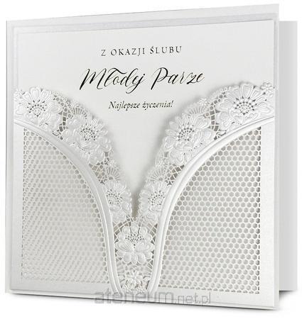 Kartka jest bogato i różnorodnie zdobiona (zależnie od wzoru: metaliczna folia, lakier perłowy,