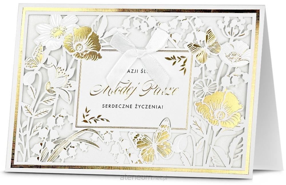 Kartka jest bogato i różnorodnie zdobiona (zależnie od wzoru: metaliczna folia, lakier perłowy,