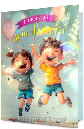 Kartka jest zdobiona opalizującą folią holograficzną, zawiera życzenia i kolorowy środek. W zestawie znajduje się koperta, kolorystycznie uzupełniająca się z kartką.