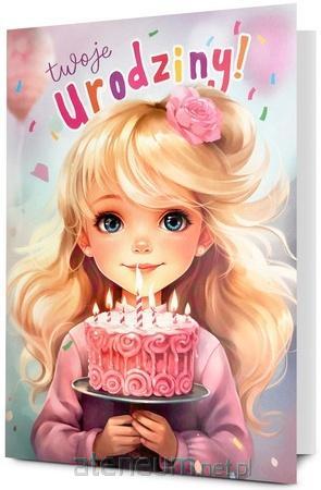 Kartka jest zdobiona opalizującą folią holograficzną, zawiera życzenia i kolorowy środek. W zestawie znajduje się koperta, kolorystycznie uzupełniająca się z kartką.