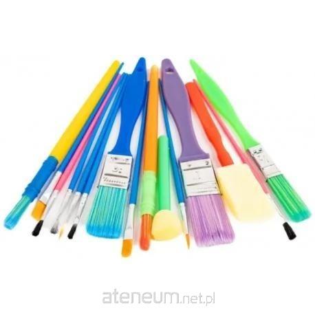 zestaw 15 pędzli - 5 płaskich, 8 okrągłych, 2 piankowe, w różnych rozmiarach