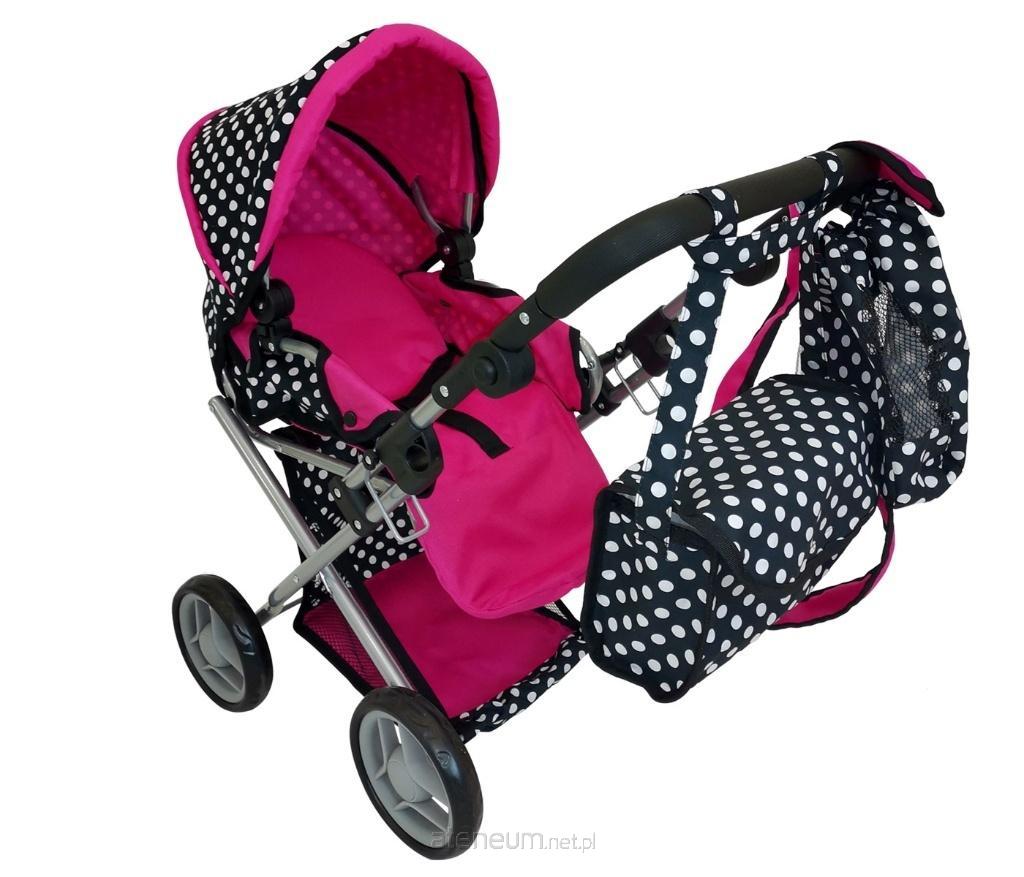 Wózek posiada: ładne metalowe rurki, szybkie składanie, blokadę przed samoczynnym złożeniem się wózka, materiał solidny bawełniany z możliwością zdjęcia do prania, duży kosz na zakupy, wyjmowane nosidło, pościel, regulowaną wysokość rączki, torbę, pasy w wersji spacerowej.