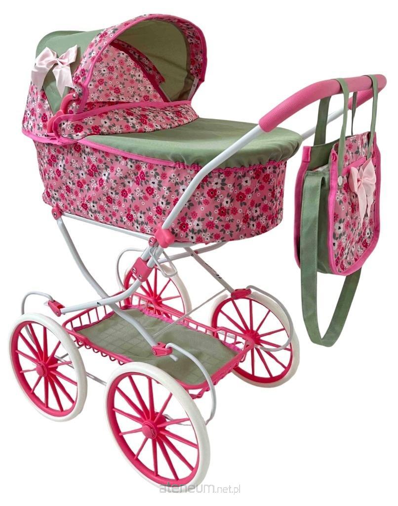 Wymiary wózka: wysokość 89cm, długość 69,5cm, wysokość rączki 80cm, średnica kół 25cm.
