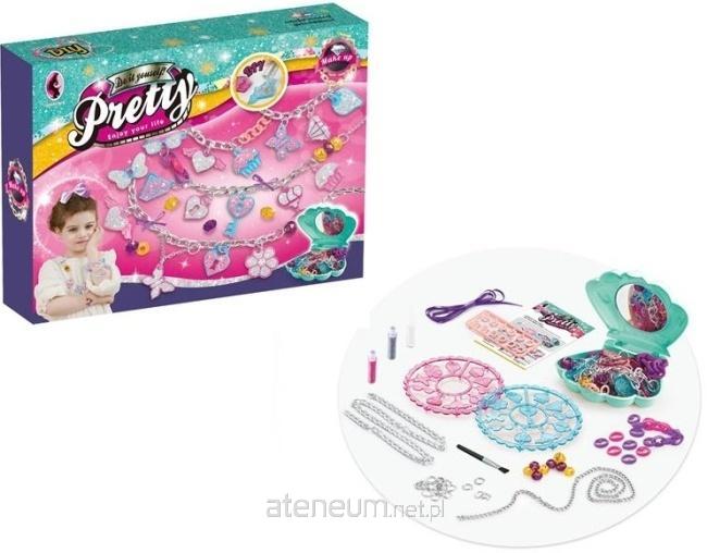 Zestaw "Pretty - Stwórz swoją biżuterię" to kolorowa i inspirująca propozycja dla dzieci, które uwielbiają tworzyć i ozdabiać. W środku znajdziesz wszystko, co potrzebne do wykonania oryginalnych naszyjników i bransoletek - różnorodne zawieszki, łańcuszki, koraliki, sznureczki oraz praktyczne narzędzia. Całość zamknięta jest w atrakcyjnym opakowaniu, które od razu przyciąga wzrok. To doskonały sposób na rozwijanie zdolności manualnych, kreatywności i wyobraźni. Zestaw świetnie sprawdzi się również jako prezent.