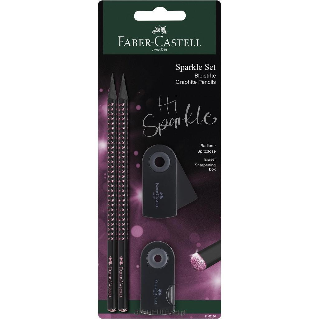 Zestaw ołówków grafitowych Sparkle Midnight Rose Faber-Castell 2 szt. z gumką Sleeve Mini i temperówką Sleeve Mini. Unikalny design z atrakcyjnymi błyszczącymi kropkami został zaprojektowany tak, aby dodać blasku biurkowej codzienności. Ołówki posiadają brokatową końcówkę. Ergonomiczny trójkątny kształt zapewnia wysoki komfort użytkowania i niemęczące, wygodne pisanie i szkicowanie. Odpowiednie również dla leworęcznych. Z odpornym na pękanie grafitem o stopniu twardości HB, dzięki bezpiecznemu procesowi wiązania (SV). Wykonane z certyfikowanego drewna pochodzącego ze zrównoważonego i odpowiedzialnie zarządzanego leśnictwa. Powierzchnie pokryte lakierem na bazie wody bezpiecznym dla środowiska i zdrowia dzieci. Gumka bez zawartości PVC.