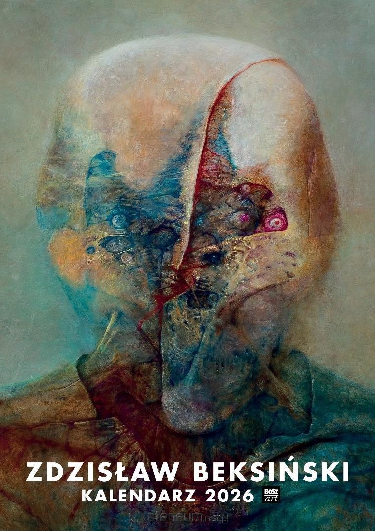 Kalendarz 13-kartkowy na 2026 rok z 12 ilustracjami prac Zdzisława Beksińskiego w formacie A3 (420x297 mm) wydrukowany na kredowym papierze o gramaturze 170g.