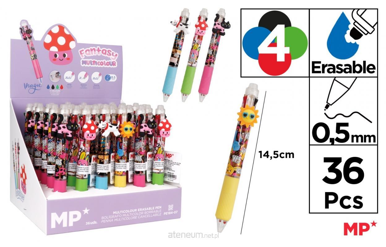 Długopis ścieralny 4-kolorowy Kot, Pies, Muchomor (36szt)