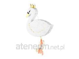 Piniata w kształcie łabędzia w kolorze białym, do wypełnienia upominkami, wymiary ok. 43.5 x 49.5 x 9 cm.