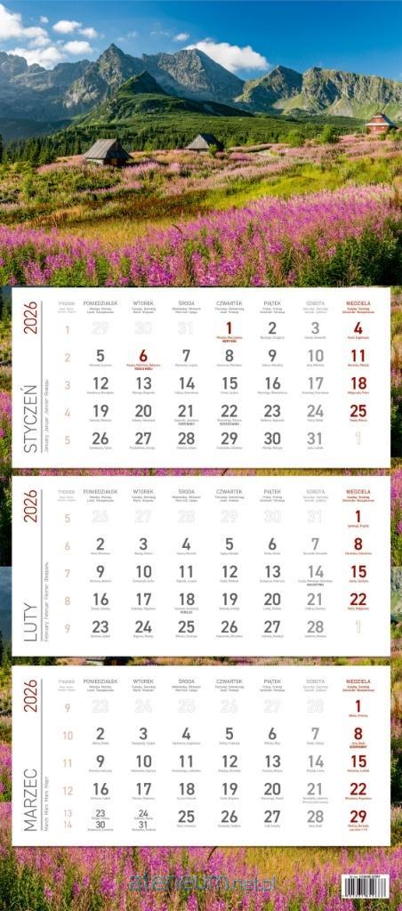 Kalendarz 2026 ścienny trójdzielny Tatry