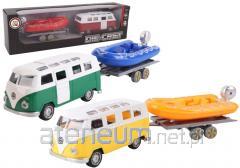 Model sportowego samochodu osobowego w wersji zabawkowej z napędem typu friction drive (naciąg sprężynowy przez rozpędzenie kół). Produkt wykonany z tworzywa sztucznego z elementami imitującymi detale aerodynamiczne. Samochód występuje w asortymencie dwóch wersji kolorystycznych: czarno-niebieskiej oraz czarno-czerwonej. Konstrukcja o dynamicznej linii nadwozia wzorowana jest na realnych pojazdach typu hypercar. Produkt przeznaczony do zabawy dla dzieci powyżej 3. roku życia.