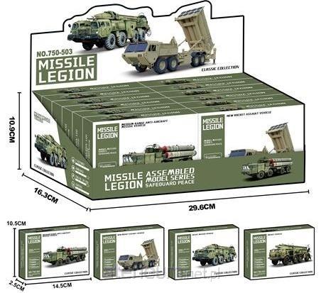 Odkryj świat militarnych maszyn z kolekcją "Missile Legion"! Ten imponujący zestaw modelarski zawiera 12 sztuk, prezentujących 4 różnorodne wzory wojskowych systemów rakietowych i pojazdów transportowych. Modele wykonane są z trwałego PVC i przeznaczone do samodzielnego składania, co rozwija zdolności manualne i cierpliwość. Wśród wzorów znajdziesz wyrzutnie rakietowe, takie jak przedstawione na opakowaniu, przypominające systemy takie jak Patriot czy S-300, a także ich pojazdy transportowe, odzwierciedlające realistyczne konstrukcje. Każdy model to miniaturowa replika, która pozwoli na stworzenie własnej "Legion Rakietowej" i odtworzenie scenariuszy strategicznych. Idealne do kolekcjonowania lub jako prezent dla pasjonatów wojskowości i modelarstwa. Cena podana jest za jedną sztukę modelu.
