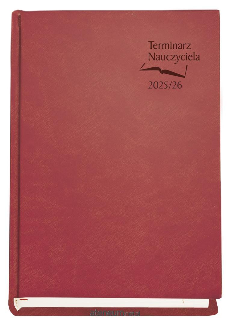 Kalendarz z charakterystycznym układem kalendarium, odejmujący od IX 2025 do VIII 2026, przeznaczony dla pedagogów i nauczycieli. W "Terminarzu Nauczyciela" znajdują się niezbędne pedagogom dodatkowe strony zawierające plany lekcji, tabele z danymi uczniów, arkusze ocen i kartki na notatki, sprzyjające lepszej organizacji czasu pracy i ułatwiające planowanie zajęć.