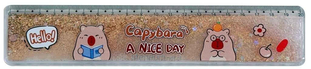 Stylowa i efektowna linijka o długości 20 cm, wypełniona wodą i błyszczącym brokatem, który porusza się podczas używania. Ozdobiona uroczym motywem kapibary, przyciąga wzrok i dodaje wyjątkowego charakteru szkolnym oraz biurowym akcesoriom. Złoty kolor nadaje jej elegancji i nowoczesnego wyglądu. Idealna dla fanów kapibar oraz oryginalnych gadżetów.