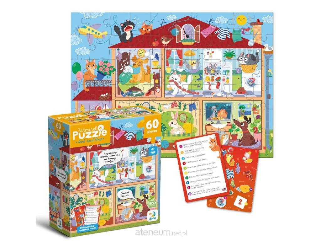 Wimmelpuzzle "Zwierzęta w domu" to barwna układanka składająca się z 60 elementów, która pozwoli dzieciom zanurzyć się w wesoły świat zwierząt domowych.