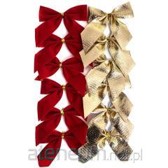 Kokardki dekoracyjne czerwone, złote 12szt