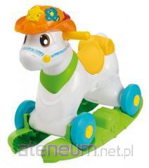 Konik na biegunach Baby Mix został zaprojektowany z myślą o dzieciach lubiących przygody. Przypomina prawdziwe zwierzątko, co sprawi, że dziecko poczuje się jak prawdziwy jeździec. Konik wykonany został z miękkiego pluszu. Bujak wyposażony jest w drewniane płozy, wyprofilowane w taki sposób, by nie dopuścić do przewrócenia podczas zabawy. Wygodne siodło, kantar, strzemiona, drewniane rączki i płozy zapewnią komfort i bezpieczeństwo podczas beztroskiego bujania maluszka. Konik Baby Mix posiada na szyi ozdobną apaszkę, a po obu stronach jego głowy umieszczono drewniane uchwyty. Zwierzątko podczas zabawy wydaje z siebie odgłosy galopu i porusza pyskiem oraz ogonem, a po naciśnięciu przycisku w jego uchu, odtwarzana jest kowbojska piosenka. Maluszek bawiąc się musi skoordynować ruchy z konikiem co stymuluje jego koordynację ruchową i rozwija wyobraźnię oraz poprawia poczucie równowagi. Schowek z bateriami ukryty jest pod brzuszkiem konika. Trzy baterie AA 1,5 V nie są dołączone do produktu. CHARAKTERYSYTKA: - drewniane rączki i płozy - strzemiona - stabilna konstrukcja - wyprofilowane siodło - kantar - interaktywne uszka - przeznaczona dla dzieci powyżej 18 miesięcy - do 25 kg wagi ciała - mięciutki materiał - konik posiada certyfikaty, atesty i deklarację zgodności CE - konik wymaga trzech baterii AA 1,5 V WYMIARY PERODUKTU: Wysokość 72 cm Długość płóz 72 cm Długość konika 55cm Szerokość 30 cm Wysokość do siedziska 50 cm Szerokość siedziska: 16 cm Waga: 2 kg