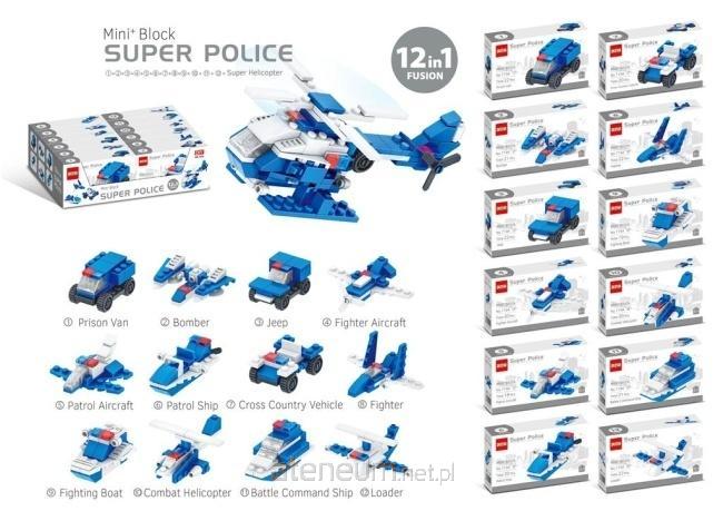 Przedstawiamy zestaw konstrukcyjny Mini Block SUPER POLICE - idealny prezent dla każdego małego fana policji i budowania! To unikalne opakowanie zbiorcze zawiera aż 12 różnych modeli pojazdów policyjnych, takich jak więźniarka, bombowiec, jeep, samolot myśliwski, samolot patrolowy, statek patrolowy, pojazd terenowy, myśliwiec, łódź bojowa, helikopter bojowy, okręt dowodzenia i ładowarka. Każdy z dwunastu modeli jest oddzielnie zapakowany i stanowi samodzielny, fascynujący projekt do złożenia. Co więcej, wszystkie 12 modeli można połączyć w jeden imponujący duży helikopter, co zapewnia godziny kreatywnej zabawy i rozwija umiejętności manualne dziecka. Ten zestaw to doskonała okazja do zbierania i tworzenia własnej floty policyjnej.