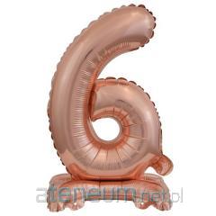 Balon foliowy mini cyfra 6 na stojaku różowe złoto